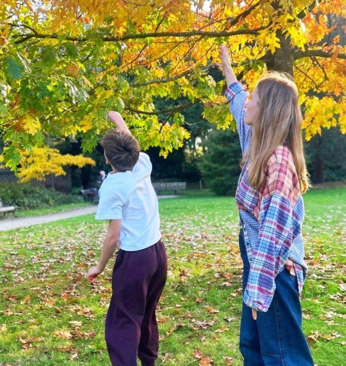 На этих кадрах семья выглядит счастливой: они наслаждаются временем вместе в местном парке. Дети собирали пожелтевшие листья и с радостью проводили время на природе.