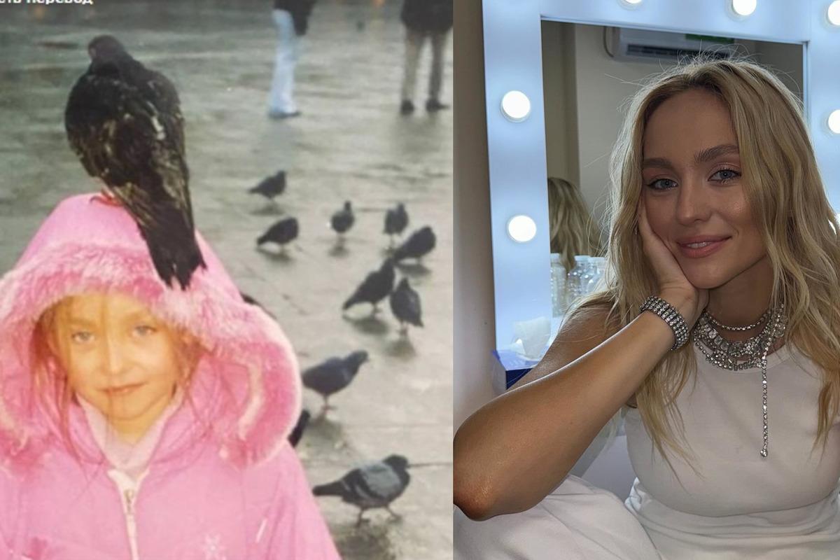Певица ROXOLANA опубликовала в Instagram-сторис свое детское фото, на котором она позирует в розовой куртке, штанах с блестками и с голубем на голове.