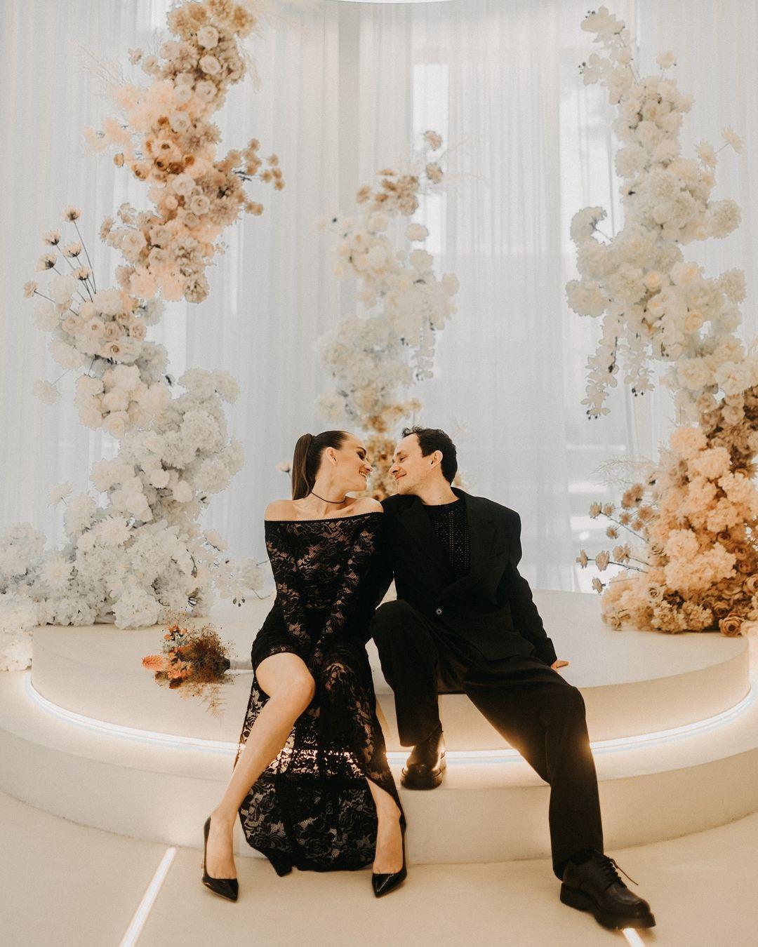 "Относительно наших образов: сразу понимали, что хотим чего-то необычного. Мы точно хотели разделить роспись и празднование свадьбы, поэтому решили сделать образы, которые будут максимально отличаться. И вот именно в этих нарядах черного цвета мы почувствовали себя максимально комфортно для такого события. Мой костюм приехал из Испании с помощью друзей. А невеста нашла платье украинского бренда", - поделился актер в комментарии для "Нового канала".