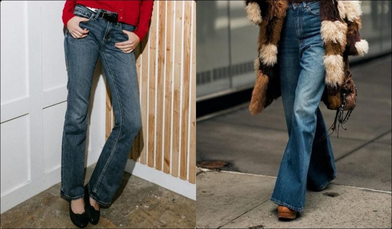 Клеш (Bootcut). Легкий клеш ниже колена снова в моде. В отличие от 70-х, расклешение теперь умеренное - оно визуально удлиняет ноги и делает образ более мягким. Эти модели прекрасно смотрятся с каблуками, ботильонами или сапогами на толстой подошве. Их обычно комбинируют с мягким трикотажем, тонкими свитерами или укороченными жакетами, которые красиво подчеркивают линию бедер.