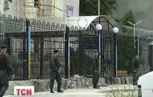 Забор посольства РФ в Киеве покрасили в сине-желтые цвета
