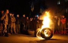 Возле Ривненской ОГА сторонники блокады зажгли шины (фото)
