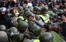 Участники митинга под Радой пытались заблокировать выход из парламента