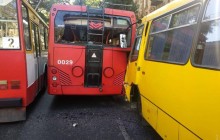 В центре Одессы маршрутка столкнулась с троллейбусом, есть пострадавшие
