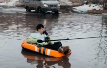 Россиянин устроил "рыбалку" в городской луже (видео)