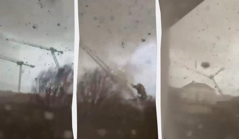 По данным властей, торнадо опрокинул краны и сорвал крыши со зданий.