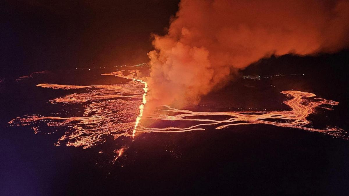 Фонтаны расплавленной породы взлетали из трещины длиной 3 км, а лава текла в нескольких сотнях метров от города Гриндавик, который был впервые эвакуирован в ноябре. Ранее тут были построены оборонительные барьеры, чтобы не допустить затопления главной дороги вдоль южного побережья полуострова.