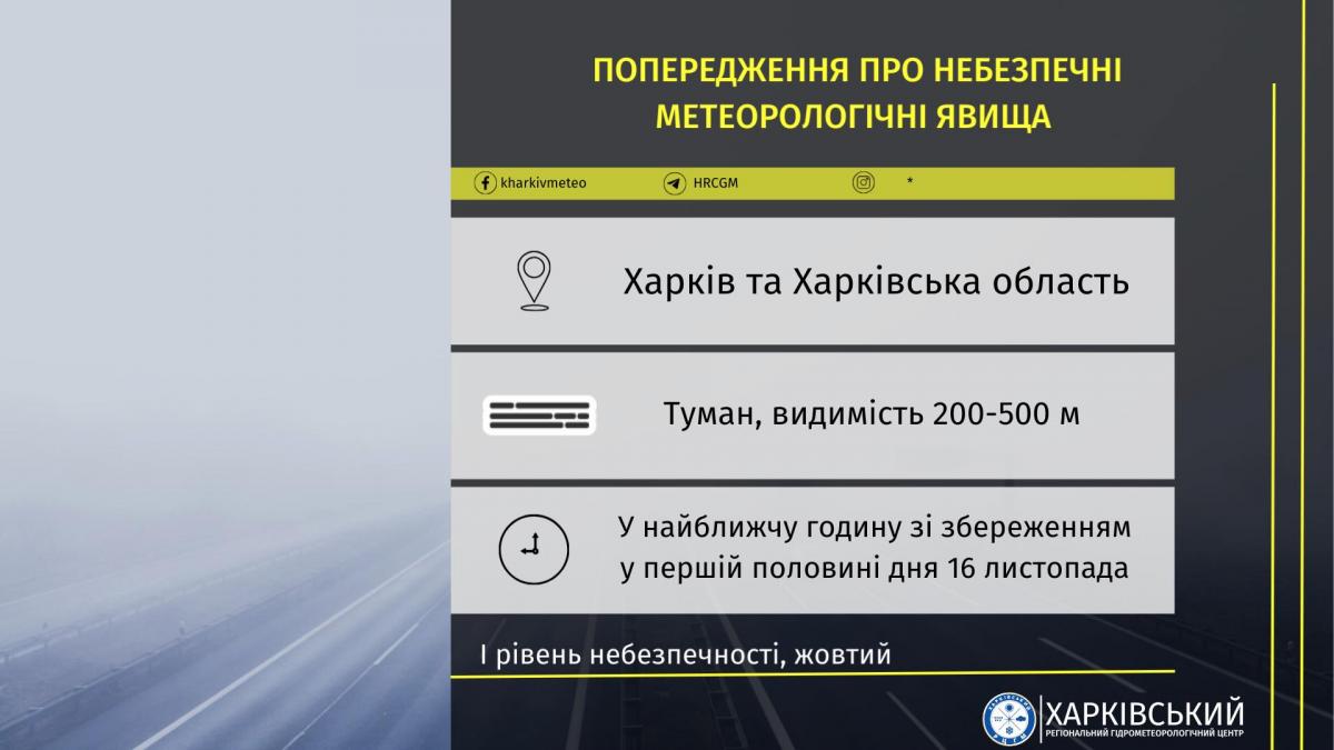 "В ближайший час с сохранением в первой половине дня 16 ноября по городу и области ожидается туман", - говорится в предупреждении.