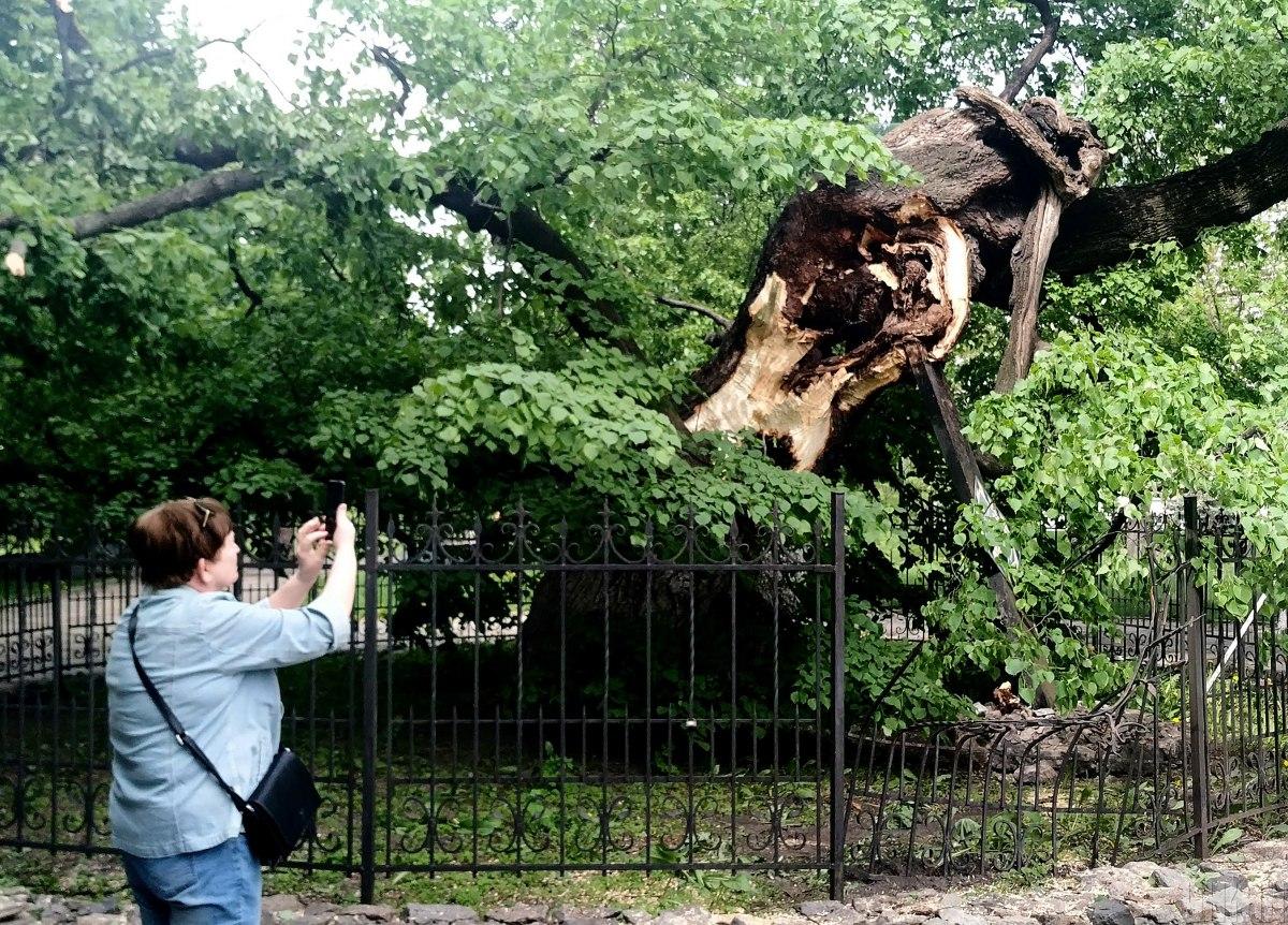 В Киеве на Андреевском спуске ураган сломал 400-летнюю липу.