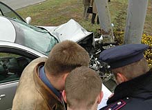 Как сообщили УНИАН в пресс-службе Департамента ГАИ МВД Украины, ДТП произошло около 8.00 на автодороге между станциями метро “Оболонь” и “Петровка”.