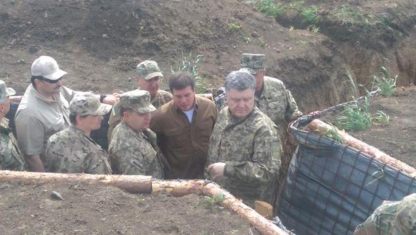 "Президент осматривает фортификационные сооружения возле Мариуполя", - написал пресс-секретарь Порошенко.