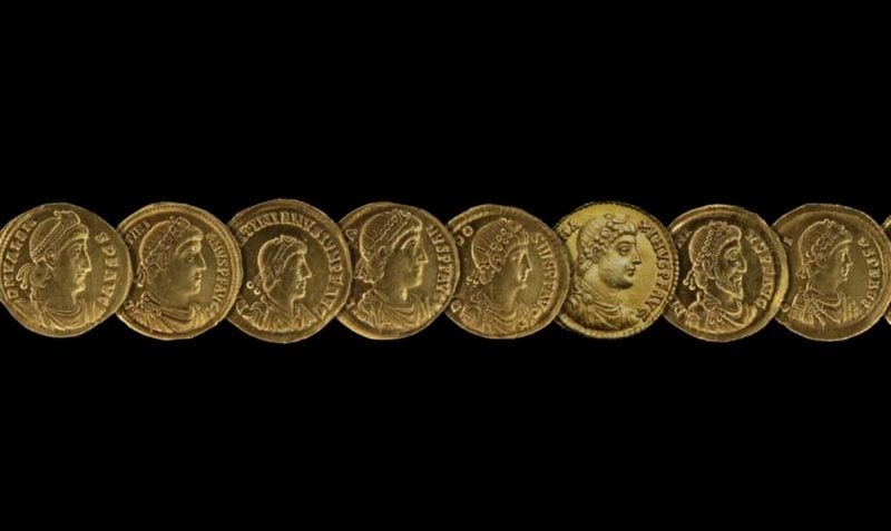 Ученые обнаружили 141 золотую монету, отчеканенную между 364 и 408 годами н.э. в деревне Хольцтум, что на севере Люксембурга. На монетах изображены портреты восьми императоров, но на трех из них нарисован неожиданный правитель, а именно Евгений, который был незаконным императором Западной Римской империи. Он был у власти всего два года (с 392 по 394 год).