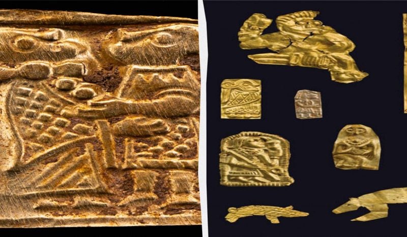 На крошечной пластинке, искусно изготовленной из тончайшей золотой фольги, выгравированы фигуры мужчины и женщины. Этот артефакт относится к особому классу предметов, известных в научных кругах как gullgubbe, что в переводе означает "золотой старик".