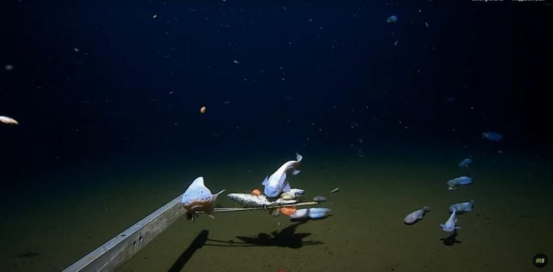 На этих глубинах эти рыбы длиной 20–25 сантиметров питаются мелкими ракообразными, которые, в свою очередь, питаются остатками пищи, падающими в впадину после гибели обитателей поверхностных вод.