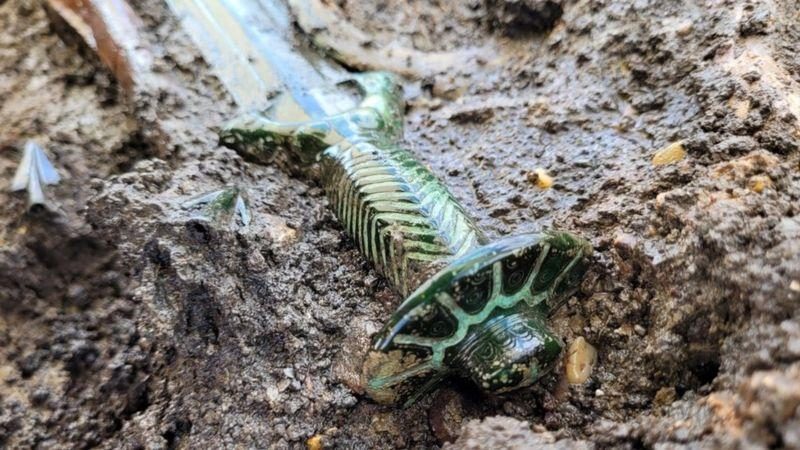 Меч и другие многочисленные бронзовые предметы той же эпохи были найдены вместе с тремя людьми - мужчиной, женщиной и мальчиком. В том была ли это семья, археологи пока не уверены. А большая редкость меча вызывает много вопросов о его происхождении.