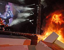 Но главный адреналин события - пожар, который произошел во время праздничного фейерверка. В 21.20 на сцене вспыхнули декорации из пенопласта. Там на тот момент находилось свыше 300 человек.