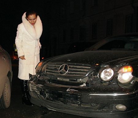 "Я увидела остановившееся авто-такси, до него было около трех метров, а я мчусь на скорости. Нажав на тормоза, поняла, что столкновения не избежать", - рассказала певица. "Резина "шипованая" и в дождливую погоду скользит. Оставалось лишь наблюдать за тем, что происходит. Мое авто с силой ударило в левое крыло другой иномарки", - добавила она.