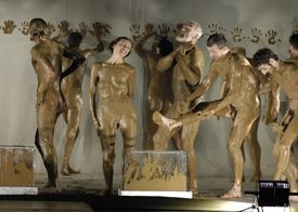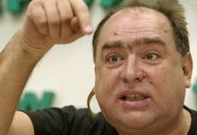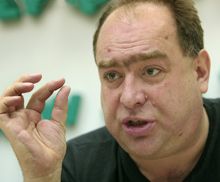 Украинский режиссер Андрей Жолдак на пресс-конференции о трагической судьбе его спектакля „Ромео и Джульетта. Фрагмент”. Спектакль в сентябре в 2005 г. был запрещен местной властью для показа в Харькове, и премьера так и не состоялась. Жолдак был снят с должности руководителя Харьковского театра им. Шевченко и выехал работать в Германию, где 22-23 октября в 2005 г. на сцене театра "Фольксбюне" состоялась всемирная премьера спектакля "Ромео и Джульетта. Фрагмент", которым был открыт Берлинский театральный фестиваль. 8 декабря в 2006 г. премьера скандально известного спектакля должна была пройти в Киеве, но вновь не состоялась, в этот раз - из-за отсутствия актеров (по словам Жолдака, директор харьковского театра не отпустил их на гастроли в столицу).