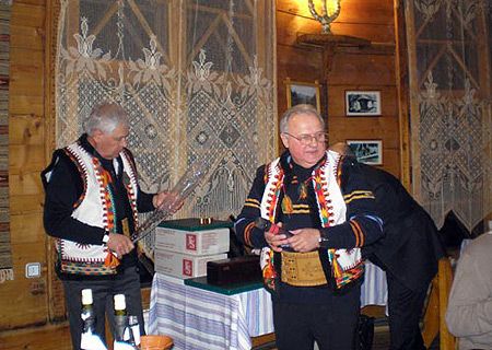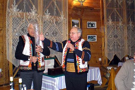 Вчера в ресторане «Гуцульщина» города Яремче Ивано-Франковской области состоялось торжественное посвящение в гуцулы губернатора Донецкой области Владимира Логвиненко и председателя Донецкого областного совета Анатолия Близнюка. Ведущие эту церемонию глава Ивано-Франковской облгосадминистрации Роман Ткач и коллега Близнюка Игорь Олийнык по очереди обрядили гостей в колоритные шляпы и жилетки, а также вручили им по особому «многофункциональному» топору-трости карпатских горцев.