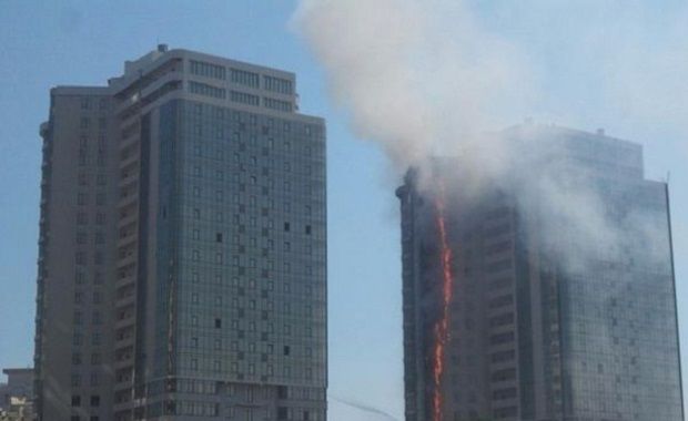 Горит 22-этажный комплекс «Гагарин Плаза», расположенный в районе пляжа «Аркадия» - на Гагаринском плато.