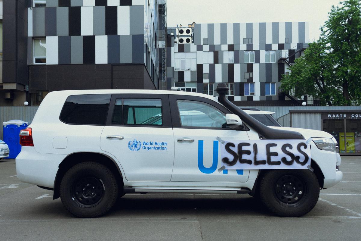 "Вчера в Украине Россия послужила причиной самой большой техногенной катастрофы за последние десятилетия. Тысячи людей остались без крова, все нуждались в помощи. Сейчас, на следующий день, на одной из киевских автостоянок до сих пор стоят "несколько" внедорожников ООН и ВОЗ. "Несколько" белых чистых внедорожников… Никакого вандализма, только выражение позиции", – заявил активист.