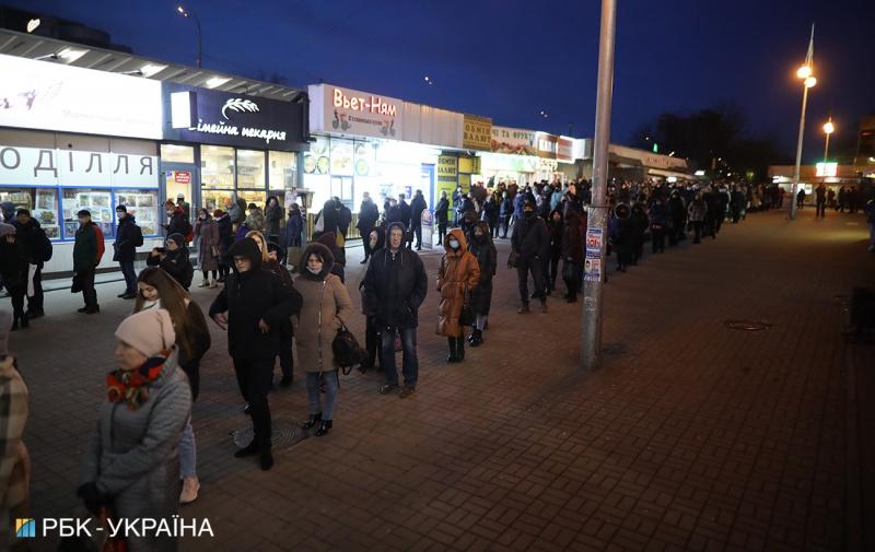 Как пишет "Сегодня", внушительная очередь также образовалась возле станции "Позняки". Люди начинают собираться на выходе из этой станции.