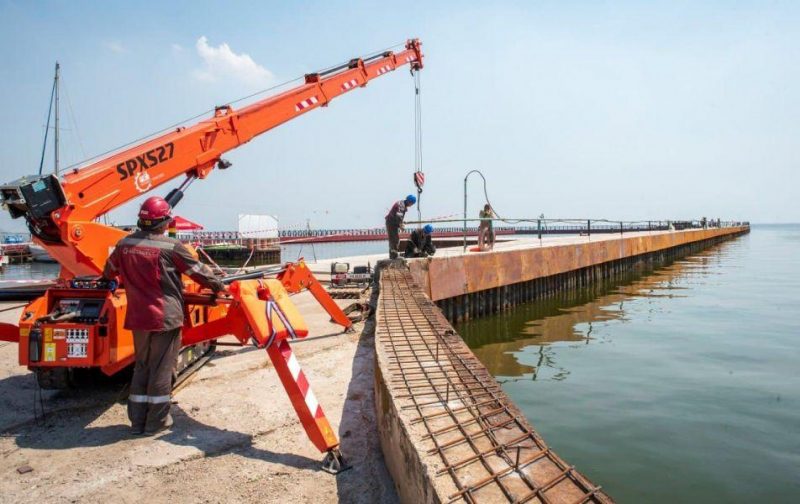 В Мариуполе металлурги продолжают обновление правой части пирса на центральном пляже. Строительство объектов перешло в активную фазу.
