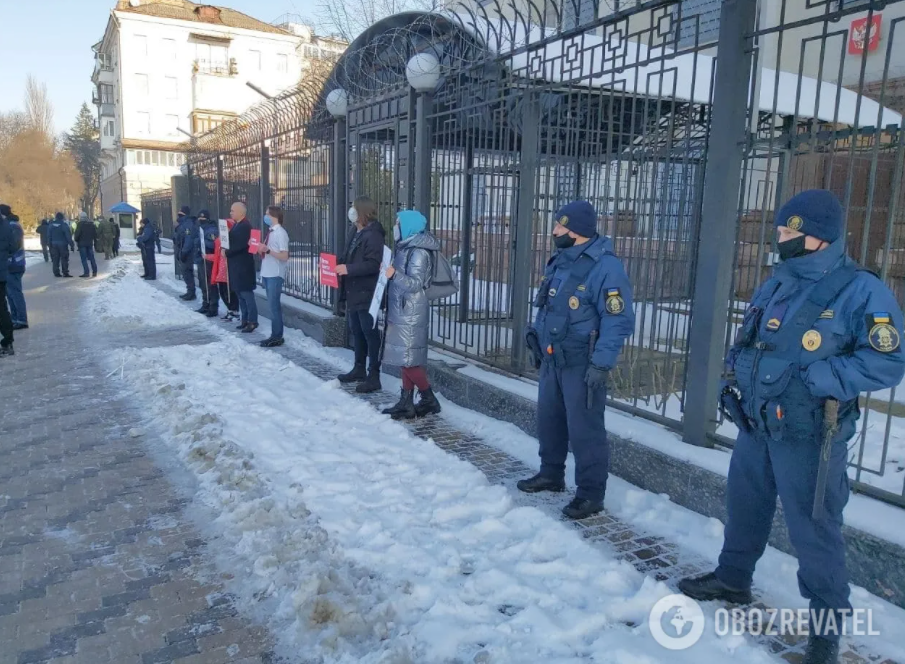 В Киеве во время акции протеста в поддержку российского оппозиционера Алексея Навального у посольства России произошли стычки.