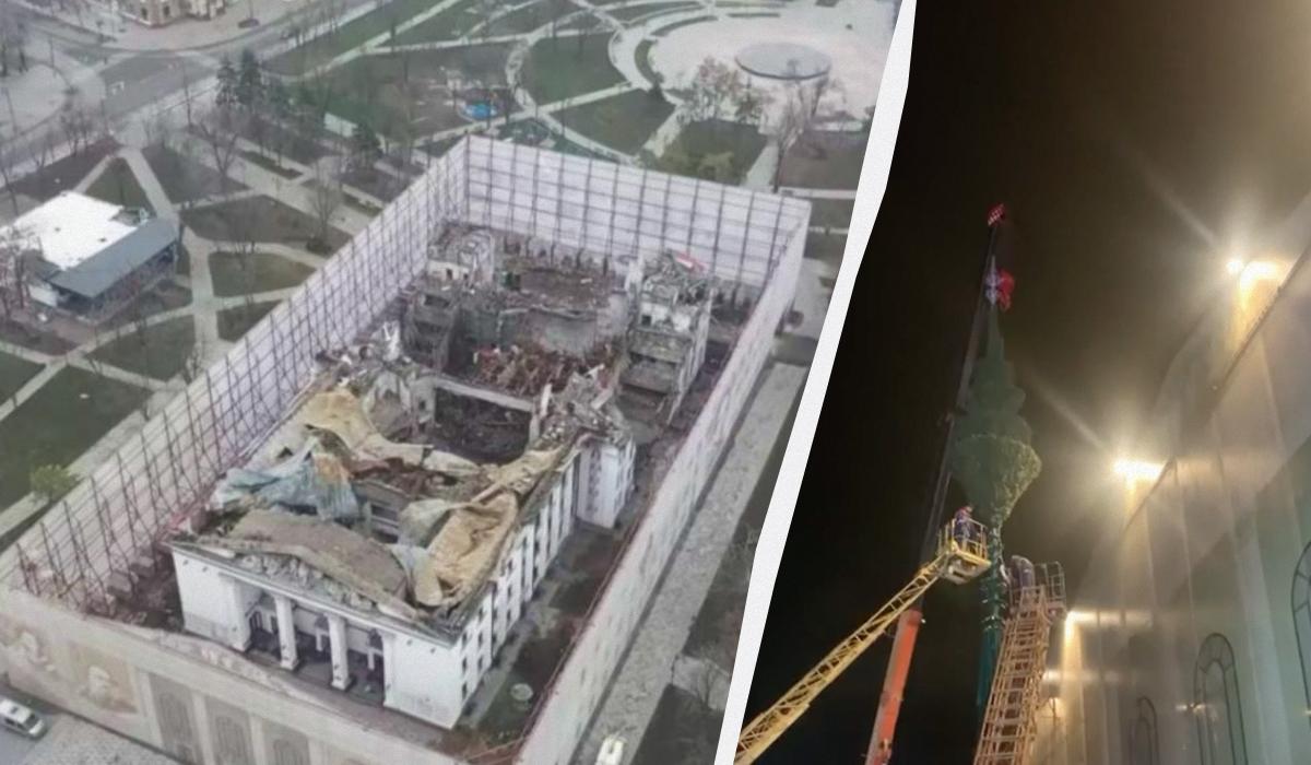 В городе уже повесили иллюминацию в виде российского "триколора". Кроме того, там устанавливают елки. Одну из них поставили прямо перед зданием Драмтеатра, где россияне убили сотни мирных людей, пишут местные телеграм-каналы.