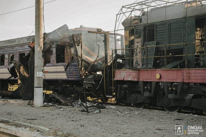 Сегодня днем россияне нанесли двойной удар по железнодорожному вокзалу в городе Шостка. Первый удар попал в локомотив пригородного поезда Терещинская-Новоград-Северского.