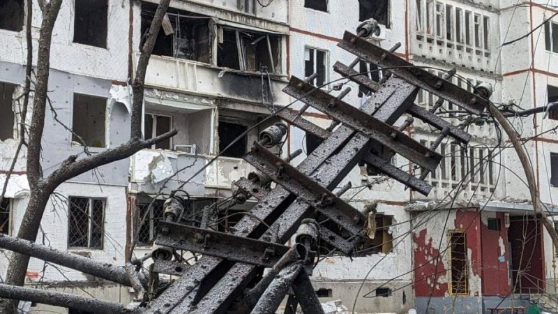 Зимой в Украине многое казалось одновременно и понятным, и странным. Однажды знакомый отвёз его на окраину Харькова для встречи с одним человеком. Тот жил один в шестнадцатиэтажном доме советской постройки. Верхние этажи здания были разрушены российской ракетой ещё в 2022 году. Заброшенные квартиры занесло снегом, а внутри стоял запах сырого, разрушающегося бетона. Соседей у мужчины почти не осталось. Единственной компанией были собака, привязанная к ящику во дворе, и вороны, кружившие над серым зимним небом.
