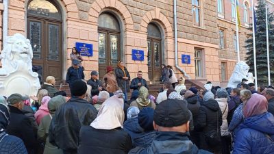 В Черновцах под зданием областной государственной администрации более 100 человек собрались на пикет против вакцинации от коронавируса.