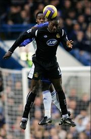 | Игрок "Челси" Майкл Эссьен (ссзади) и форвард "Уигана" Эмиль Хески ведут борьбу за мяч |