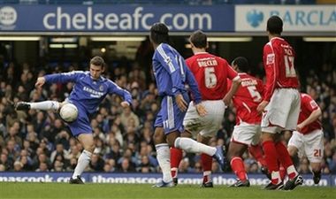 | Андрей Шевченко забивает гол в ворота "Ноттингем Форест" |