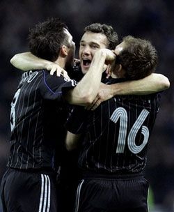 Эссьен через все поля нашел мячом Роббена, который оттянул на себя защитника и сделал пас на Шевченко, который по левому флангу вошел в штрафную и с левой же ноги в дальний угол точно ударил!