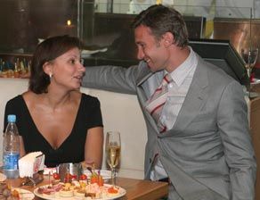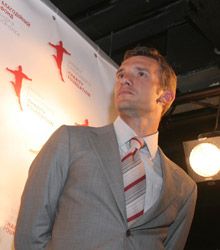 Форвард итальянского "Милана" и национальной сборной команды Украины по футболу Андрей Шевченко, глава фонда имени Андрея Шевченко его сестра Елена, жена Андрея Кристен Пазик во время благотворительного аукциона в Киеве во вторник, 23 мая 2006 г.