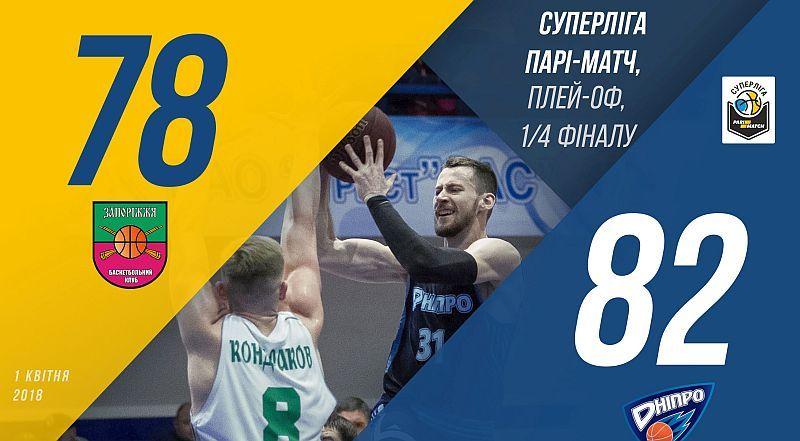 "Днепр" в драматичной борьбе одолел "Запорожье-ZOG" в четвертьфинале баскетбольной Суперлиги. Поединок проходил в Запорожье и завершился победой "Днепра" с разницей в 4 пункта, сообщает официальный сайт турнира.