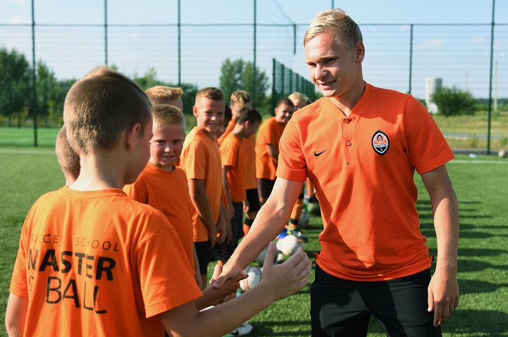 Игрок донецкого клуба провел для спортсменов мастер-класс, поучаствовал в тренировке, а также в двустороннем матче поочередно за обе команды.