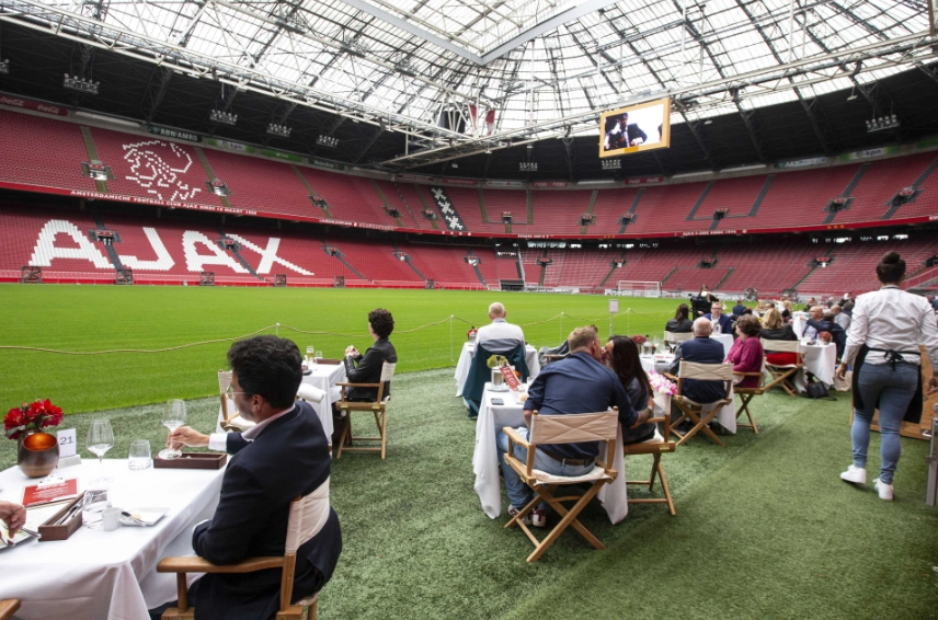 На стадионе амстердамского "Аякса" "Йохан Кройф Арена" открылся ресторан, который принимает посетителей возле футбольного поля.