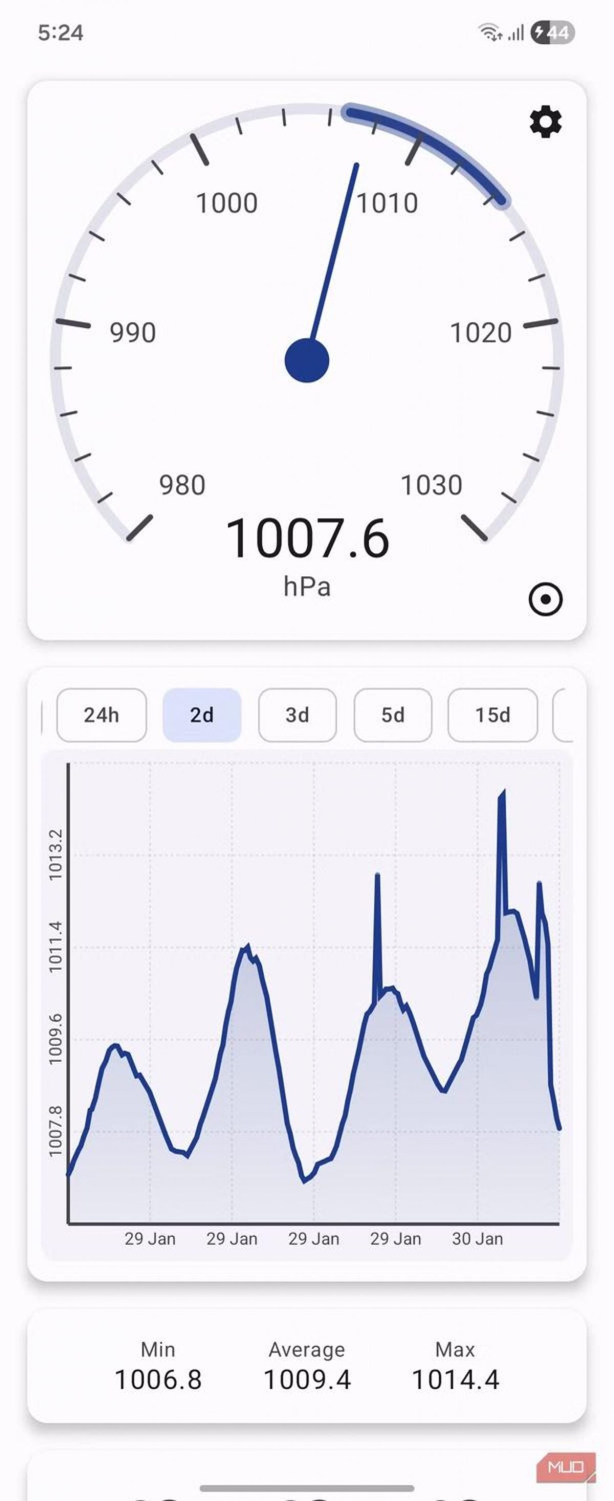 В отличие от погодных аппов, которые предсказывают прогноз для всего района, барометр в смартфоне фиксирует давление именно в той точке, где вы находитесь, и делает это в реальном времени. Это позволяет отслеживать тенденции самостоятельно, без интернета и сторонних источников данных.