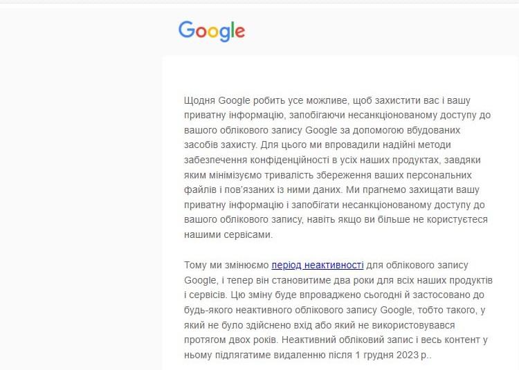 Это решение затрагивает аккаунты, которые были неактивны в течение 2 лет. Письма-напоминания получили, в том числе украинские пользователи.