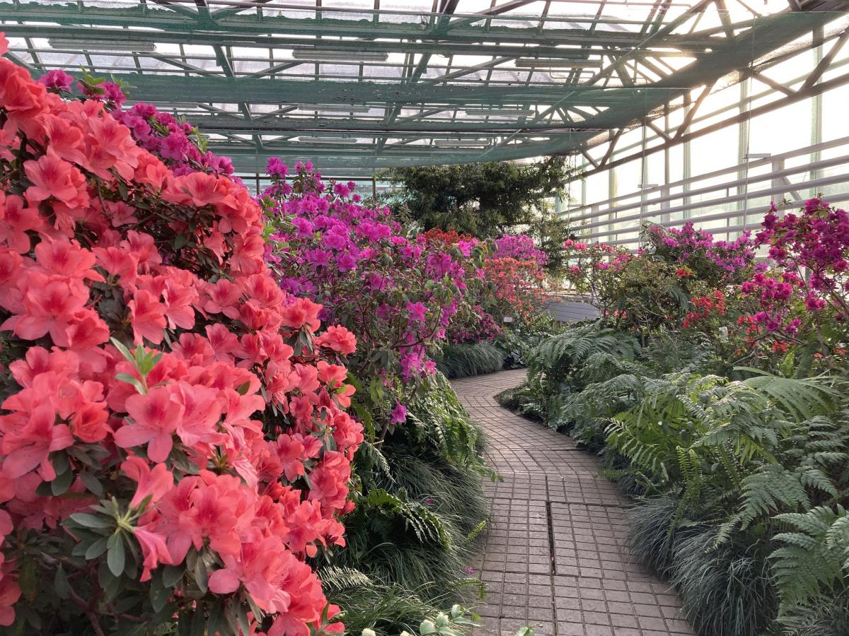 В столичном Национальном ботаническом саду имени Н. Н. Гришко НАН Украины в феврале-марте 2023 года продолжается сезон цветения азалий.