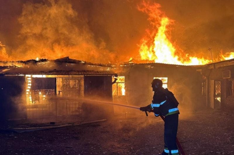 В результате удара произошли масштабные пожары и разрушения. По разным адресам произошли возгорания частных жилых домов, нежилого и складского здания, гаража, а также многоквартирного дома.