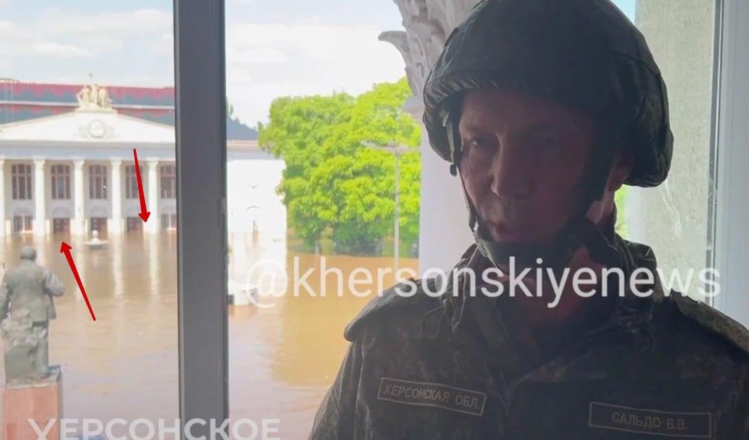 Гауляйтер Херсонской области Владимир Сальдо записал циничное видео на фоне затопленной вследствие подрыва ГЭС Новой Каховки, уверяя, что в городе "паники нет".