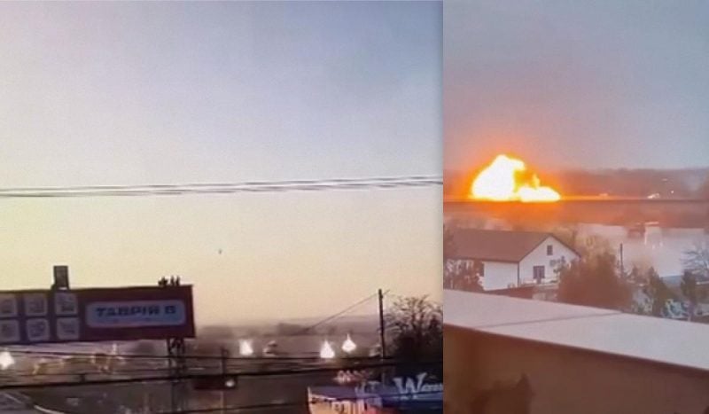 "Днем по мосту ударила баллистика. На видео вы видите, что заряд был кассетный. Зачем? Кассета не повредит мост, кассета убьет мирных людей вокруг моста в очереди", - написал эксперт.
