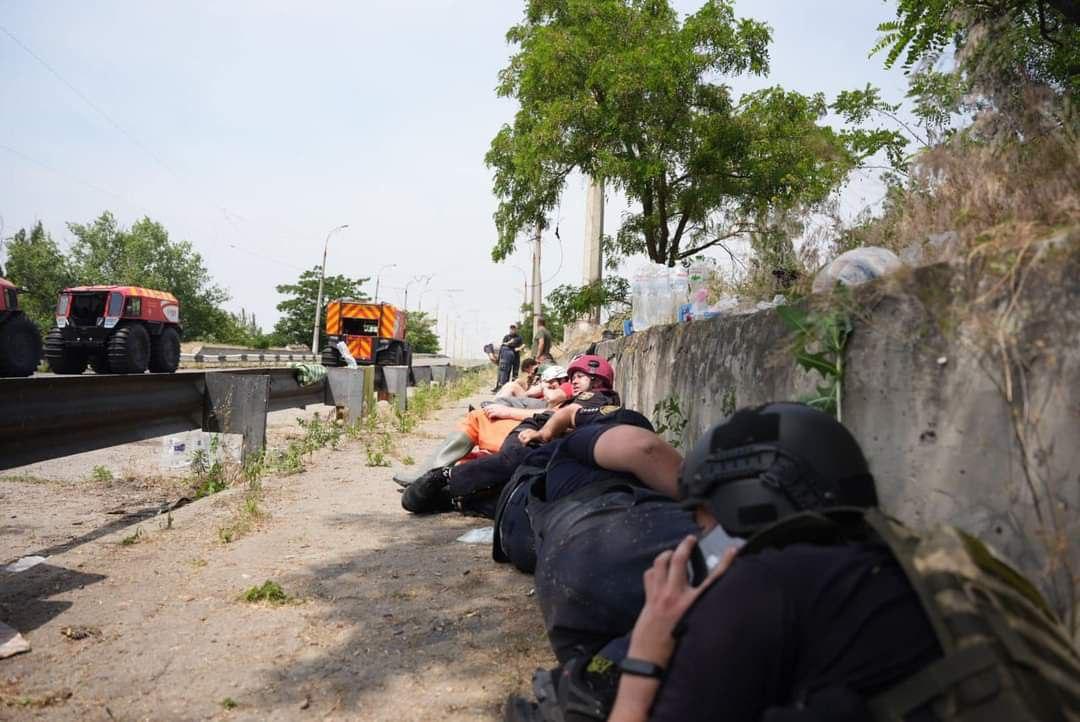 "Масированный артобстрел по локациям, где работают наши спасатели. Где гражданские люди, которым оккупанты уничтожили дома, эвакуируются на безопасную, казалось бы, территорию. Ранения получили два наших сотрудника: водолаз-сапер и водитель-сапер из Николаевской области. На фото наши ребята, которых при эвакуации людей застал обстрел. Герои без оружия!", - отметил Крук.