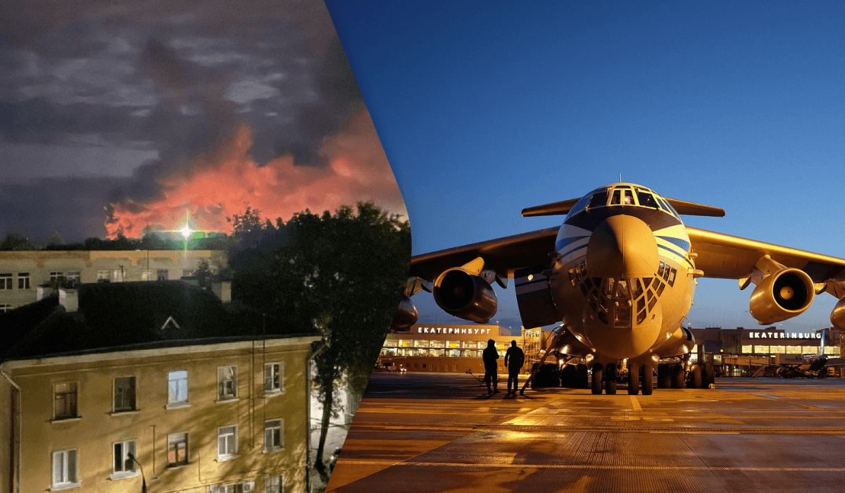 Как сообщал УНИАН, в районе Псковского аэродрома этой ночью прогремели взрывы, на месте начался пожар. В частности, на обнародованных в социальных сетях фото и видео можно было увидеть, что от аэродрома в районе Кресты поднимается несколько столбов черного дыма. Сообщалось, что на аэродроме горели самолеты Ил-76.