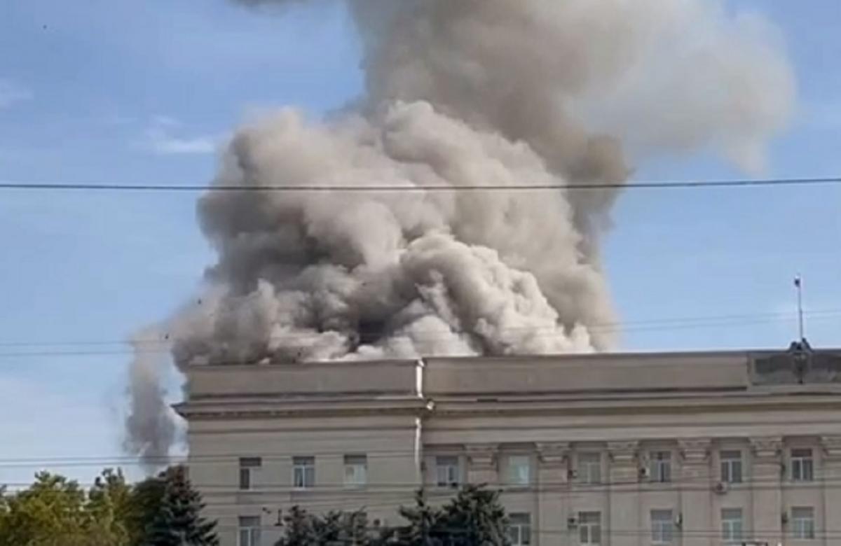 Об этом сообщает Суспільне. Над админзданием в центре города поднялся густой дым.