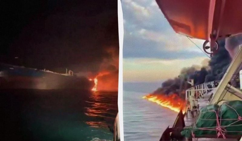 Взрыв вызвал масштабный пожар, однако экипаж удалось спасти. В то же время страны региона выражают обеспокоенность из-за возможной экологической катастрофы, ведь судно с опасным грузом затонет.