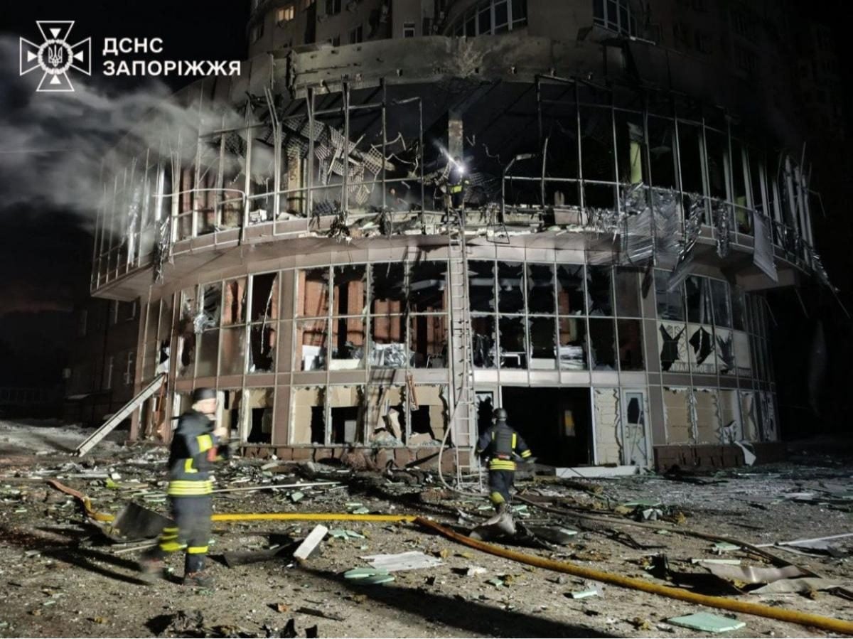 По данным ГСЧС, в течение ночи российские войска дважды атаковали Запорожье ударными БПЛА. Первая волна произошла поздно вечером 1 января. Возникло три пожара: загорелись нежилая пристройка к многоэтажке и две хозяйственные постройки. Также обломками повреждены жилые дома, дорожное покрытие и автомобили.